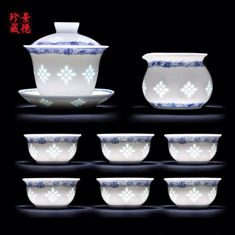 景德鎮玲瓏瓷廠家可以為公司企業定制各類禮品玲瓏茶杯及玲瓏茶具,可以在杯身或杯蓋上打出公司名稱或logo。