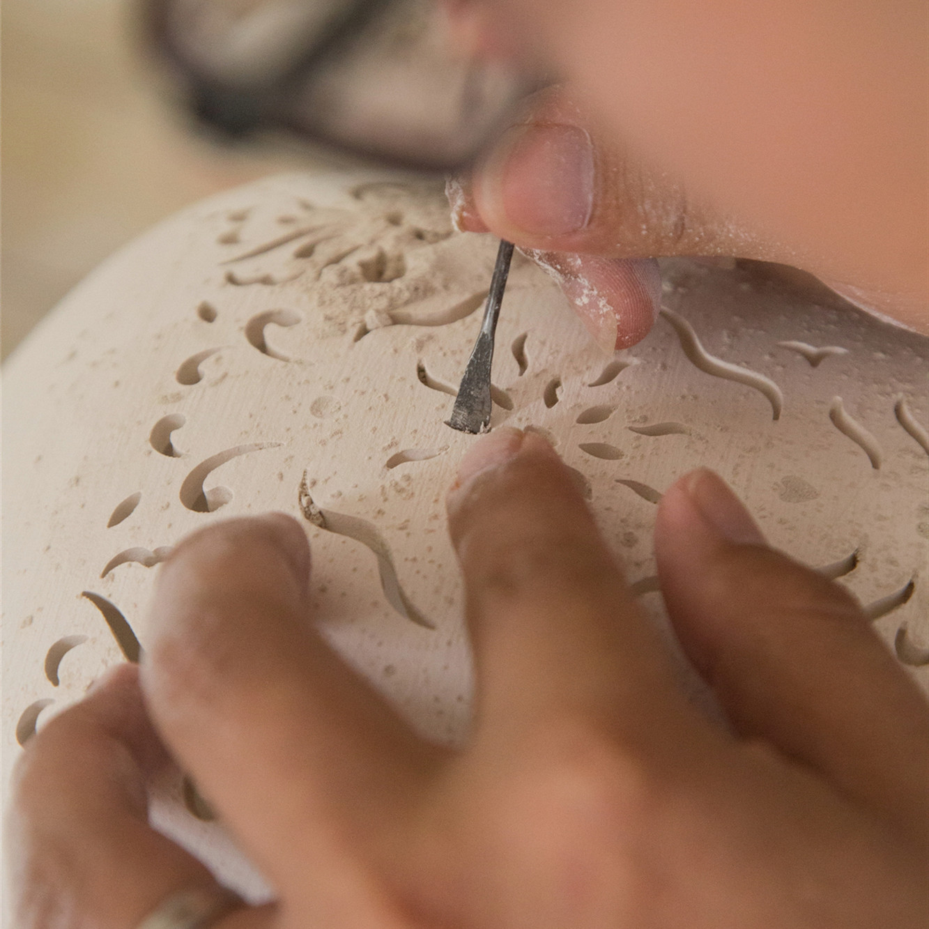 它采用鏤雕技法先在瓷器坯體上鏤出若干一定形狀的玲瓏眼,用特制的玲瓏釉把眼填平,再繪以青花,施釉后高溫燒成。青花玲瓏以其玲瓏剔透、幽靜雅致、精巧細膩、樸素大方的藝術特色,給人以清新明快之感,為人們所推崇備至。